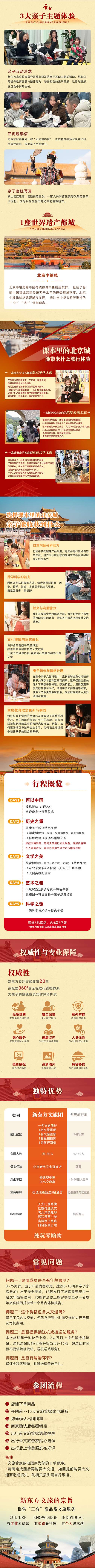 机构简介:1993年北京新东方学校成立,而后壮大为新东方科技集团。从教育领域出发,经过32年创新发展,集团业务目前已涵盖教育服务、生活服务、文旅服务三大领域。2005年北京新东方游学、研学、营地开始营运,到2023年正式开拓文旅版图。依托新东方32年知识传播和优质师资优势,新东方文旅集团面向中老年、亲子及青少年群体提供康养旅居、文化旅游、研学、国际游学和营地教育等高品质服务,致力于满足不同群体的精神需求、成长需求、社交需求。从教育、生活到文旅服务,我们将奋楫笃行,打造有文化幸福感、有知识获得感、有个人追求感的高品质文旅体验。愿景使命打造有知识获得感、文化幸福感、个人追求感的高品质文旅服务。 作为中国游学行业的开拓者和引领者,新东方文旅希望能够打造安全、高品质、专业的中国国际游学行业知名教育品牌,让孩子们早日去了解世界,让孩子们把世界带回中国! 基于北京新东方学校32年的教育经验优势,新东方文旅希望能让有着丰富知识内涵的新东方老师们,成为热爱分享文化与知识的导游,带着人们在行走的过程中,穿越时空,眺望那些曾经的历史故事与人生海海,在岁月与文明中,去感知那些伟大的精神和厚重的中国文化!6 大类核心竞争力6 种高端产品项目3 类商务定制案例1 套产品定制流程