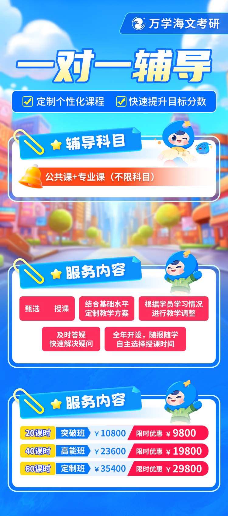 机构简介:万学教育是为大学生等青年群体提供高品质学业与职业培训服务的杰出教育机构。自2007年启动运营至今,凭借先进教育技术和优异培训效果,在研究生入学考试、大学生就业创业等教育领域,连续十五年创造优异教育成果,以显著优势蝉联行业大奖。万学教育旗下海文考研是中国研究生考前培训事业的著名机构,在考研领域拥有雄厚实力。万学由于在大学生教育多个领域的杰出成果,荣获了教育企业的至高荣誉,成为教育部卓越合作伙伴,并获得教育部重磅感谢状。万学海文在钻石卡辅导系统的基础之上,组建了总计超过6356名教授、博士和硕士研发团队,总计投资2.2亿,研究了超过50万考研学子的精细学习过程和影响学习效果的三百余个因素变量,并运用先进的深度教育、系统运筹和云计算等多种前沿科学技术,研发了超越传统教育的智能矩阵超级学习系统,实现了教育培训技术的飞跃。万学创新创业事业成果,运用革命性先进模型——CVC创新创业深度教育与孵化系统平台与互联网+智能矩阵深度学习系统,帮助学习者大幅度提升各种重要能力,刷新了多项教育领域历史记录。万学在青年群体创业、职业与学业发展培训领域已成为中国杰出教育机构。累计辅导学生超过300万人次。基于万学教育的教育理念、模式和效果,万学获得红杉资本、联想投资、DCM基金、百度、浩然资本、华富嘉辰、安达富基金等多家基金多轮巨额投资。1.万学教育由于在大学生教育多个领域的杰出成果,荣获了教育企业的行业大奖。2.万学教育在2022年为促进高校毕业生就业做出了重要贡献,荣获教育部重磅感谢信!3.万学教育在2021年全国高校毕业生就业工作中做出了突出贡献,获教育部授予“卓越合作伙伴”荣誉,并获教育部颁发的重磅感谢状。4.万学教育在2020年教育部24365“互联网+就业指导”公益直播课工作中做出了突出贡献,教育部副部长亲自为万学教育颁发了重磅感谢状。5.万学由于优异教学实力与成果,获教育部高等教育司审批为全国高校提供高质量学业与职业在线深度学习系统。6.万学教育由于在配合工信部“产教融合”工作中做出了突出贡献,获得工信部重磅感谢信。7.万学教育由于在配合教育部“世界慕课大会”的工作中做出了重要贡献,获得教育部重磅感谢信。8.万学由于在研究生和本科生专业教育领域的教研成果,获教育部规划建设中心特批在全国高校建设新型经济产业站与产业学院。9.万学由于在研究生和本科生核心素质教育领域的优异教研成果,获教育部就业指导中心审批成为大学生核心能力全国高校师资培训体系联合研究与实施单位。10.万学由于在研究生与本科生科研创新和就业创业教育领域的优异理论与实践成果,与多所985与211等高校建立了多层次深度教研合作。11***23年,万学教育集团蝉联中央广电总台国际在线颁发的教育行业嘉奖,荣获“2023年度品牌实力教育集团”荣誉!12***22年,万学教育集团蝉联中央广电总台国际在线颁发的教育行业两大嘉奖。13***21年,中央广电总台国际在线活动中,万学教育荣膺教育行业大奖。副总裁张强先生荣评为“教育行业影响力人物”。14.万学多次获重磅媒体:人民日报、光明日报、经济日报、半月谈等重点专题报道。15.万学教育被清华大学和人民大学出版社作为典范案例写入教材。16.万学教育获投资基金红杉资本、联想投资、DCM、凤凰基金、百度、浩然资本、华富嘉辰、ADV等总计近20亿投资。17.万学由于配合华为在全国985与211高校建设研究生与本科生先进产业领域教育模块,获华为颁发“优秀合作伙伴”奖。18***24年:
