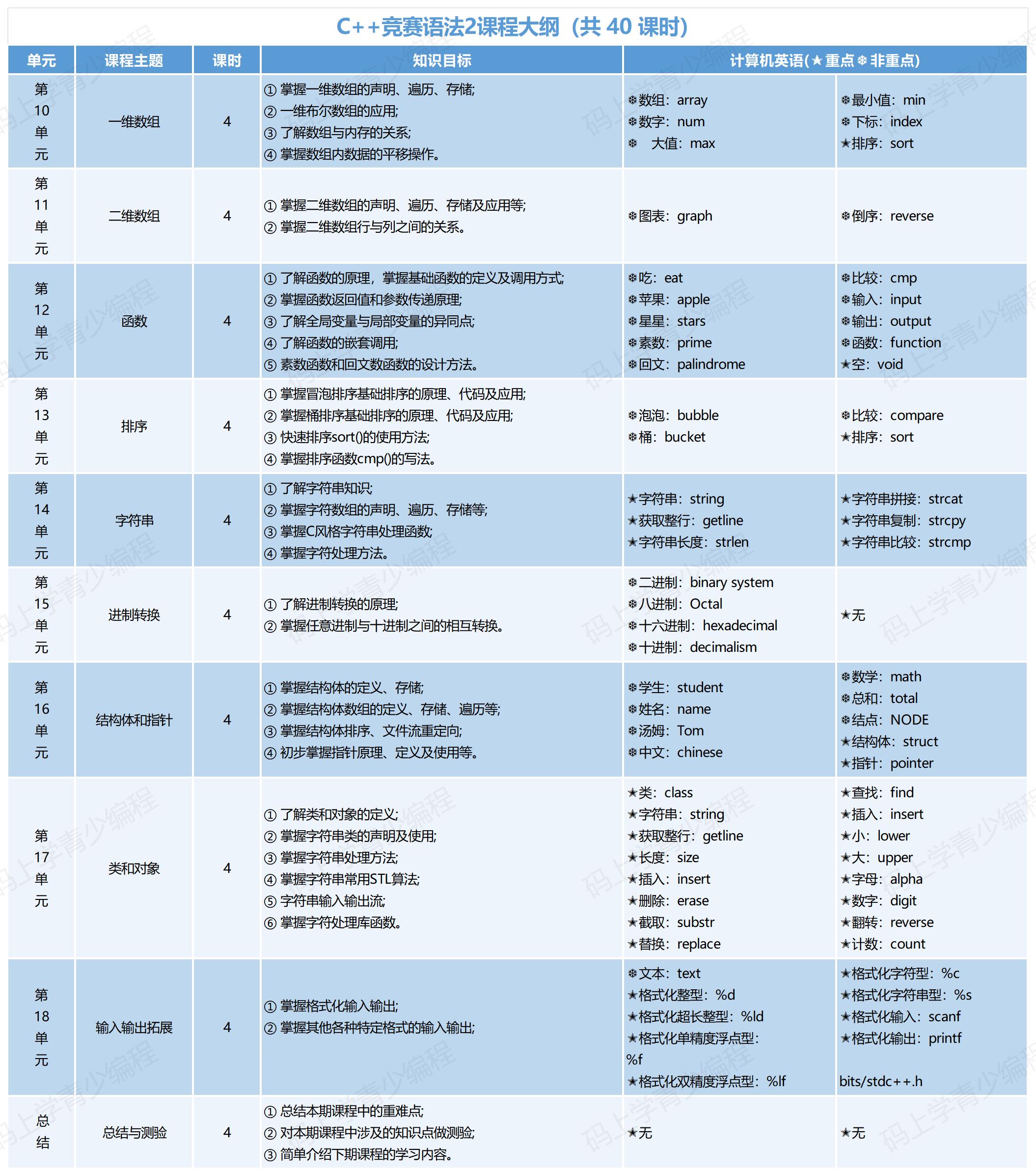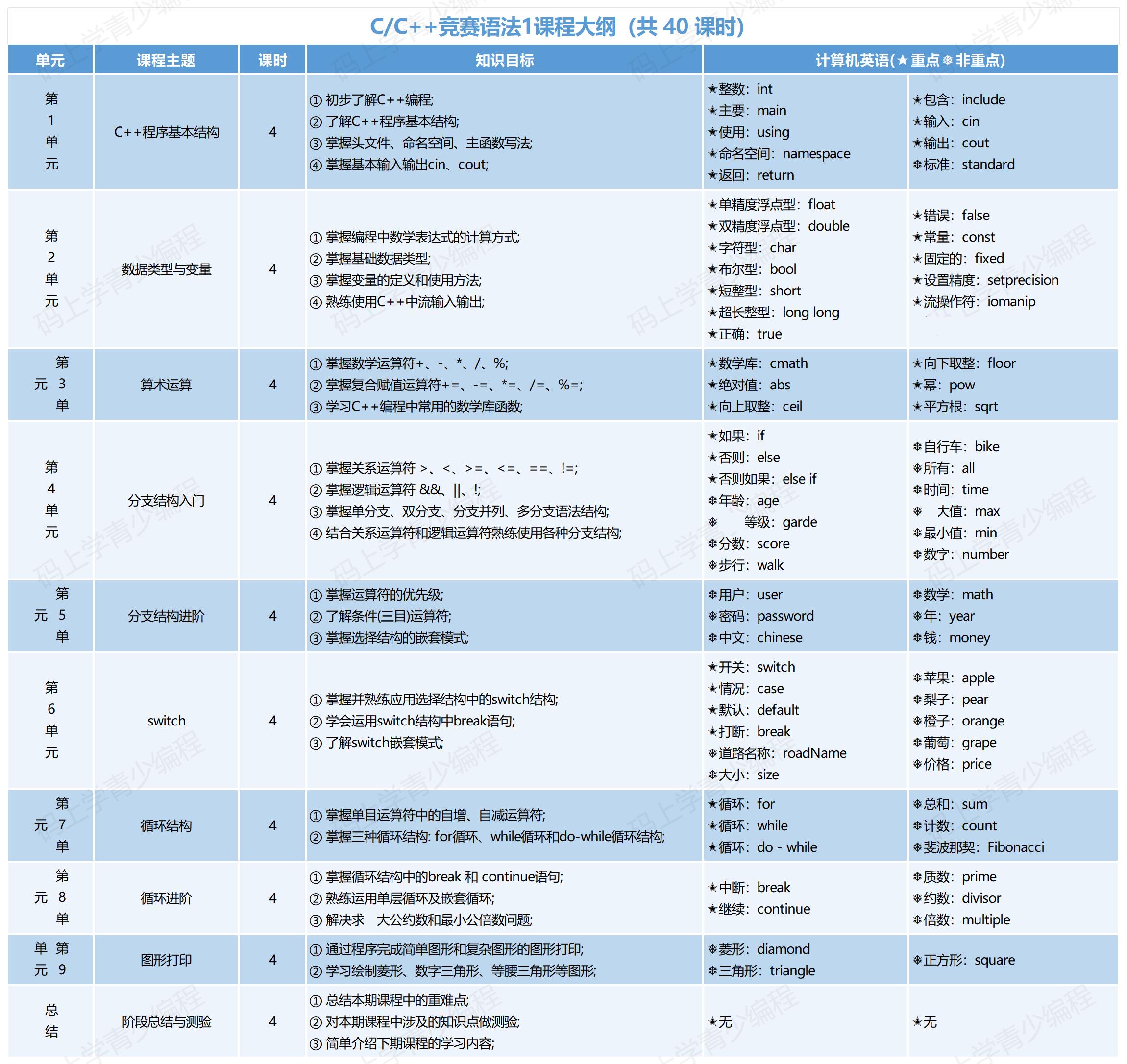 本课程专为编程初学者量身打造,聚焦C++竞赛语法,采用线上直播授课,提供一对一与小班课两种灵活班制。课程总计80课时,由拥有丰富竞赛经验的教师亲自授课,助力学生系统掌握C++编程精髓,为参加C++相关竞赛筑牢坚实基础。