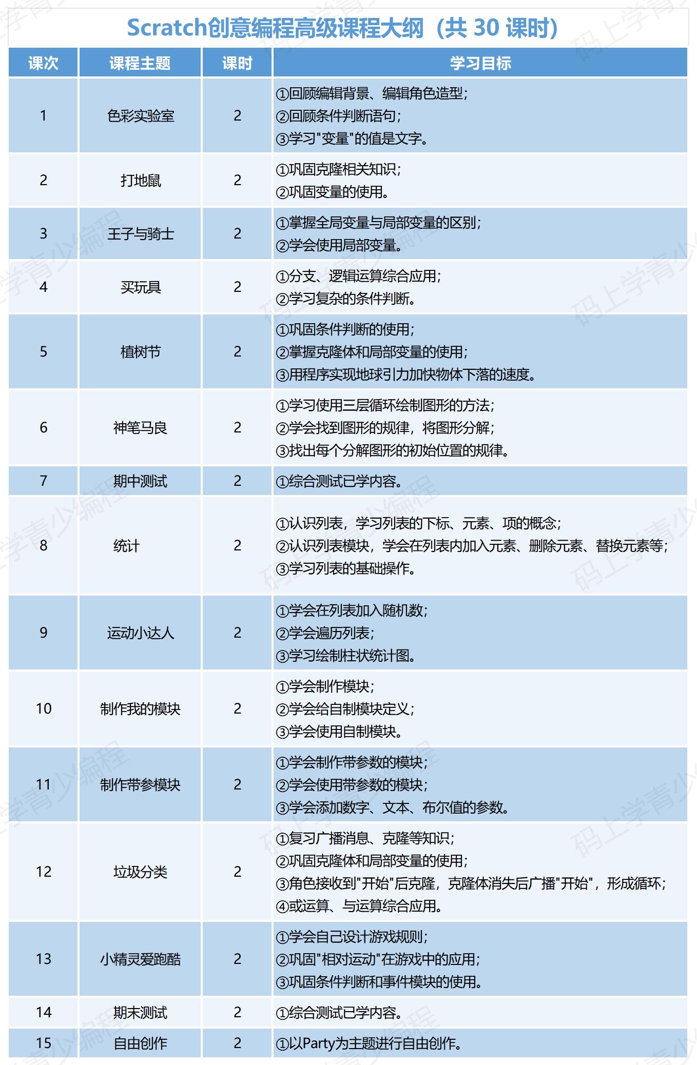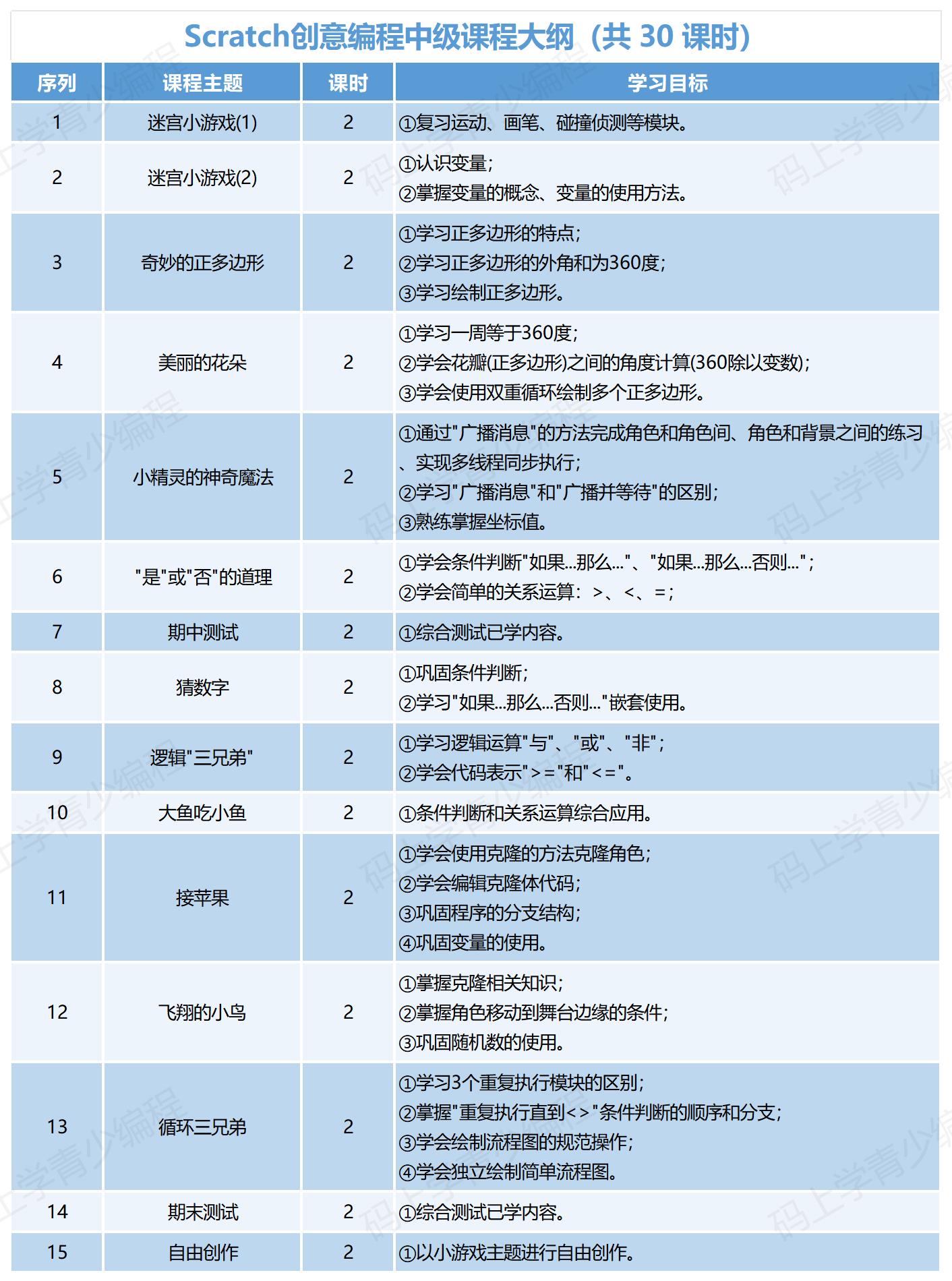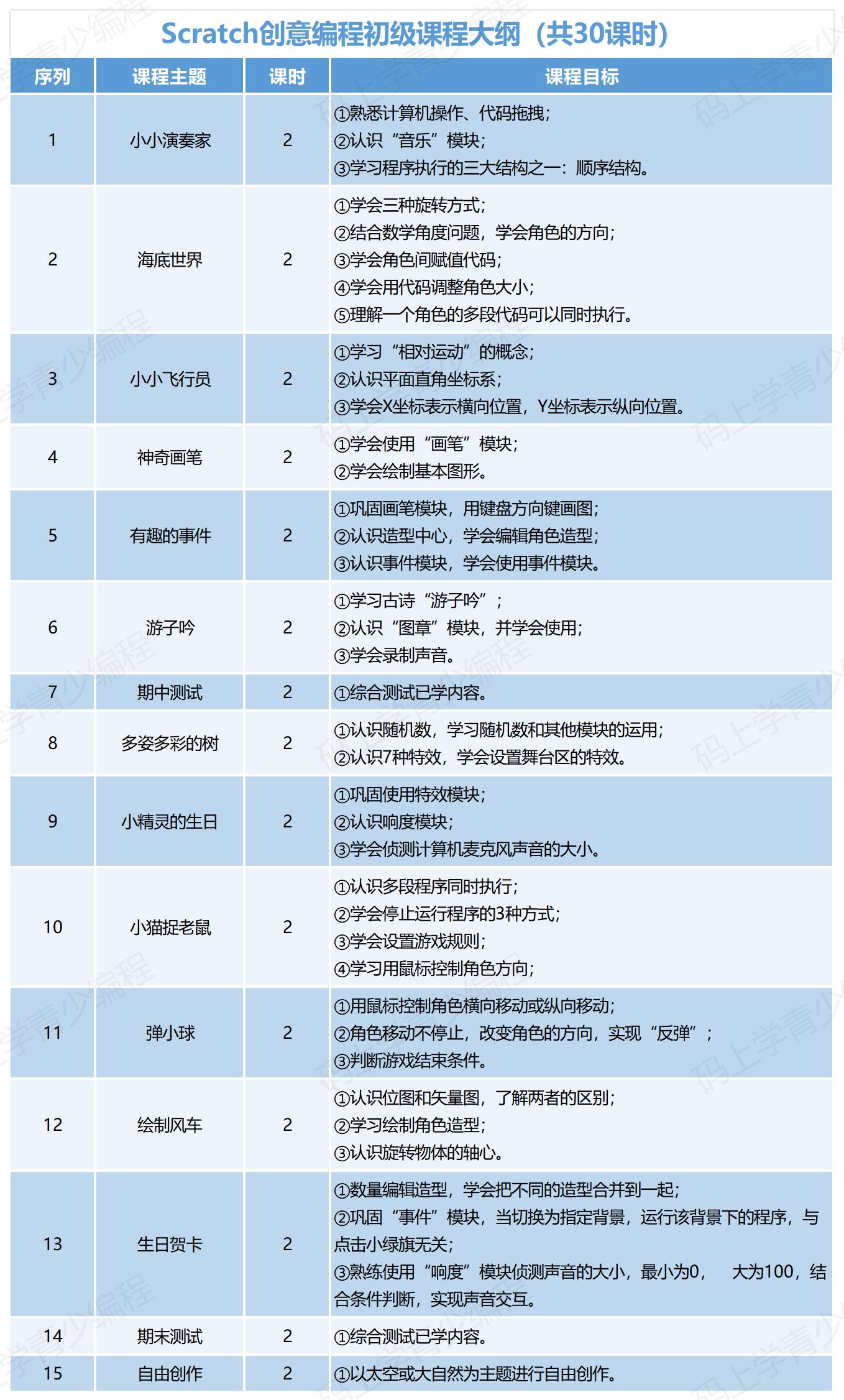 本系列课程循序渐进,初级夯实操作与顺序逻辑;中级深化变量、循环与条件判断;高级掌握列表、模块化与抽象思维,最终实现自主创作,系统培养计算思维与创新能力。