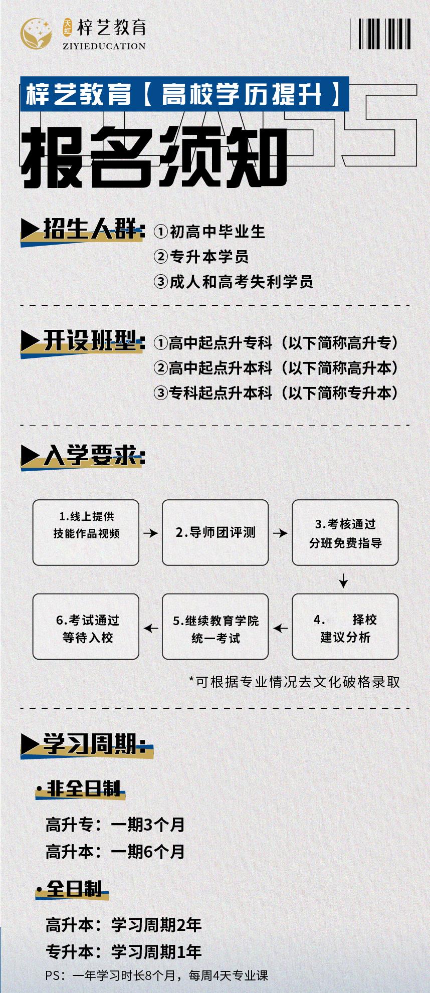 梓艺教育高校学历提升专为高起专、高起本、专升本,想要提升学历的同学专属打造的班型!