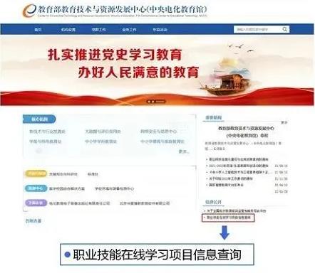 进入教育部教育技术与资源发展中心(中央电化教育馆)网站,于首页“信息公开”栏,点击“职业技能在线学习项目信息查询“可进入查询页面。