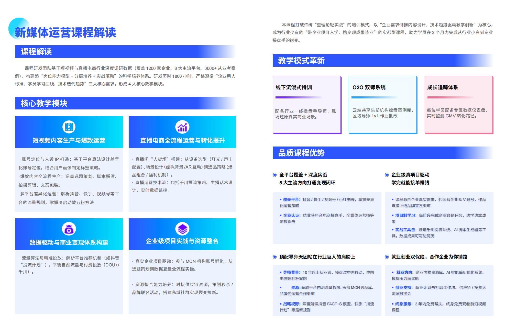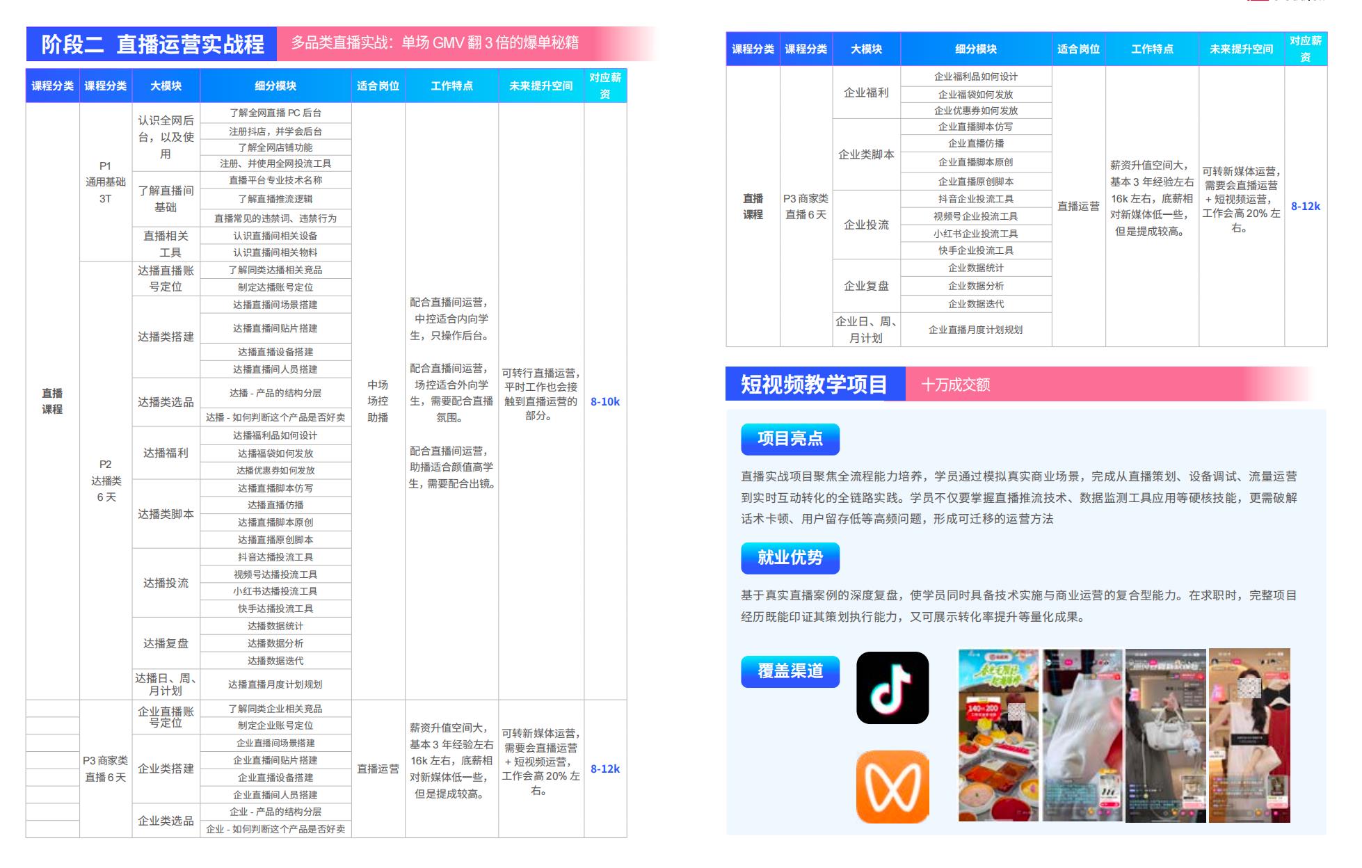 职业路径实现从素人到百万 GMV 操盘手,岗位覆盖直播投流、数字人运营等全产业链,适配实体店主、应届生等群体快速入局。