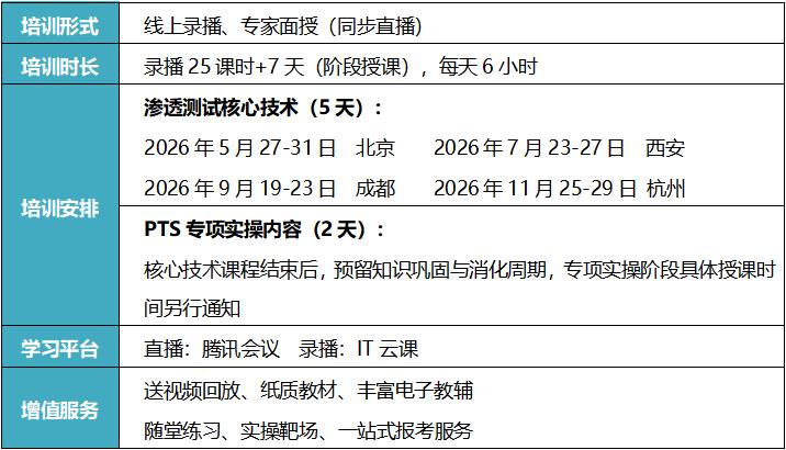 该认证旨在弥补网络安全人才缺口,强化企事业单位网络安全防御能力,为我国网络安全建设培养专业的渗透测试实战型人才。