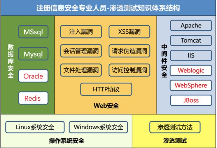 CISP-PTS知识体系结构共包含五个知识类,分别为: