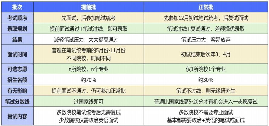由于管理类专业考研招生的特殊性,加之重点院校录取分数线比较高。因此-些没有时间备考但背景优秀的申请人,常常会因为“分数线”的硬标准而被拒之门外。为了充分筛选人才,录取优秀考生,不少商学院纷纷开启“提前面试”,对那些通过提前面试的优秀申请人,在初试中给予适当的扶持。提前面试在全国笔试统考前,在 5-11月份先面试,在12月份后笔试,也叫“提前批“
