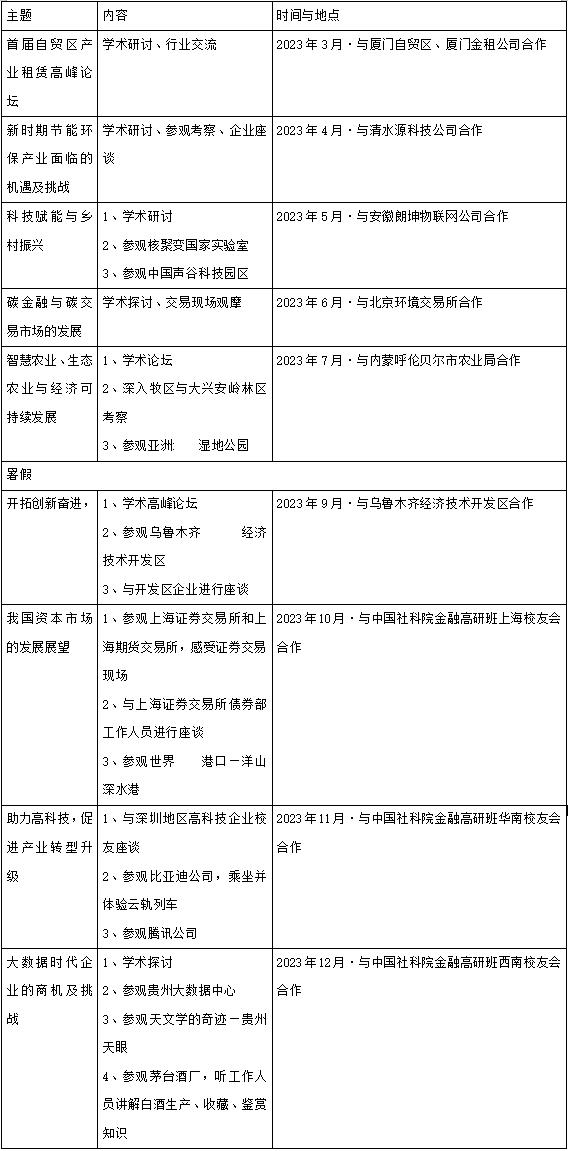 社会实践:除规定的课堂教学活动外,每学期安排三至五次社会实践课程,内容包括学术研讨、参观考察、行业交流、企业座谈。