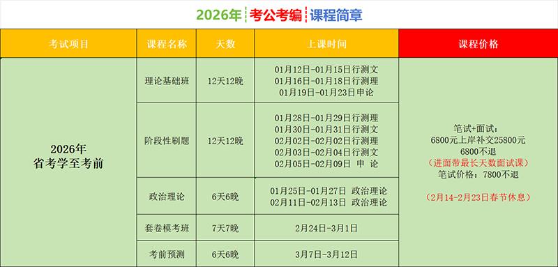 长春2026年省考学至考前