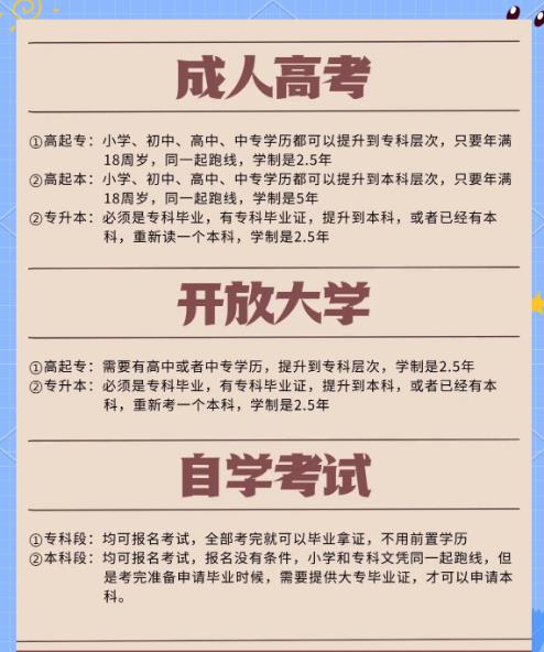 在知识经济时代,学历是职场晋升、考公考编、积分落户及个人发展的硬性门槛。面对日益激烈的职业竞争,系统性学历提升已成为打破发展瓶颈、拓宽人生选择的战略性投资。无论是专科、直本还是高效的专本套读,获得国家承认、学信网可查的高等学历,都将为您开启职业发展的新篇章,赋予未来更多的可能与机遇。