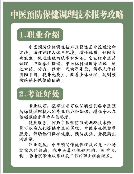 在国家"治未病"健康战略深入推进的背景下,中医预防保健调理师成为健康服务领域的核心人才。随着慢性病防控需求增长和民众健康意识提升,掌握中医特色调理技术的专业人员在健康管理机构、社区卫生中心、养生企业等领域备受青睐。持证人员不仅能获得稳定就业机会,职业发展空间广阔。