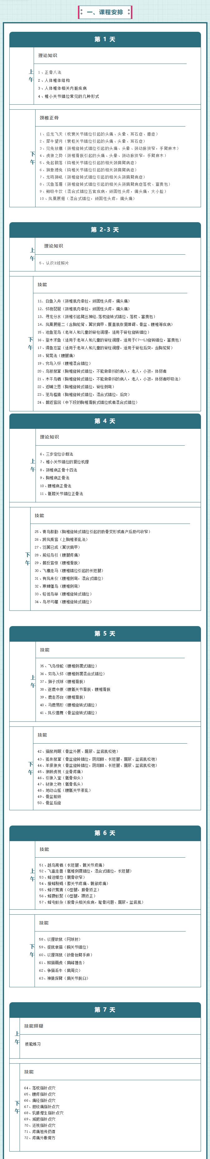 报名方式(2选1)1、预交800元报名费,快递《柔式正骨72式》教案,供学员预习。2、预交2800元报名费,快递《柔式正骨72式》教案+开通72招式视频课程,供学员预习。备注:预报名费用不退,因事未能参加可延期保留学位。