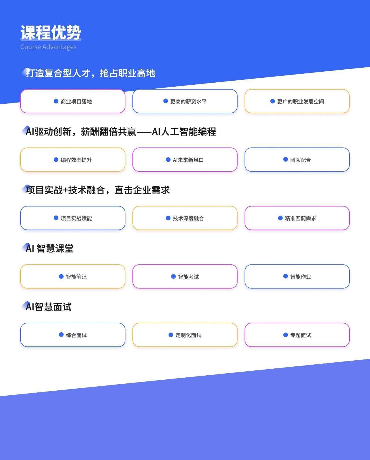蜗牛学苑全新10.0课程体系均融入AI技术,并结合AI智慧课堂、AI面试官、AI在线教育平台,更加聚焦个性化教学,提升学员学习质量和业务能力,助力学员高薪就业。
