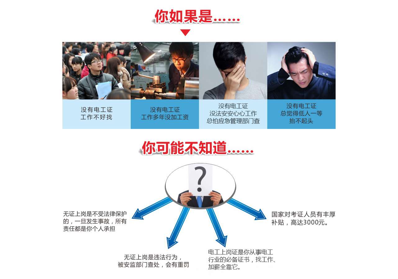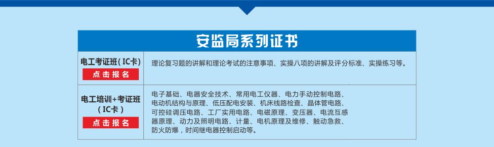 电子基础、电器安全技术、常用电工仪器、电力手动控制电路电动机结构与原理、低压配电安装、机床线路检查、晶体管电路、可控硅调压电路、工厂实用电路、电磁原理、变压器、电流互感器原理、动力及照明电路、计量、电机原理及维修、触动急救、防火防爆,时间继电器控制启动等。