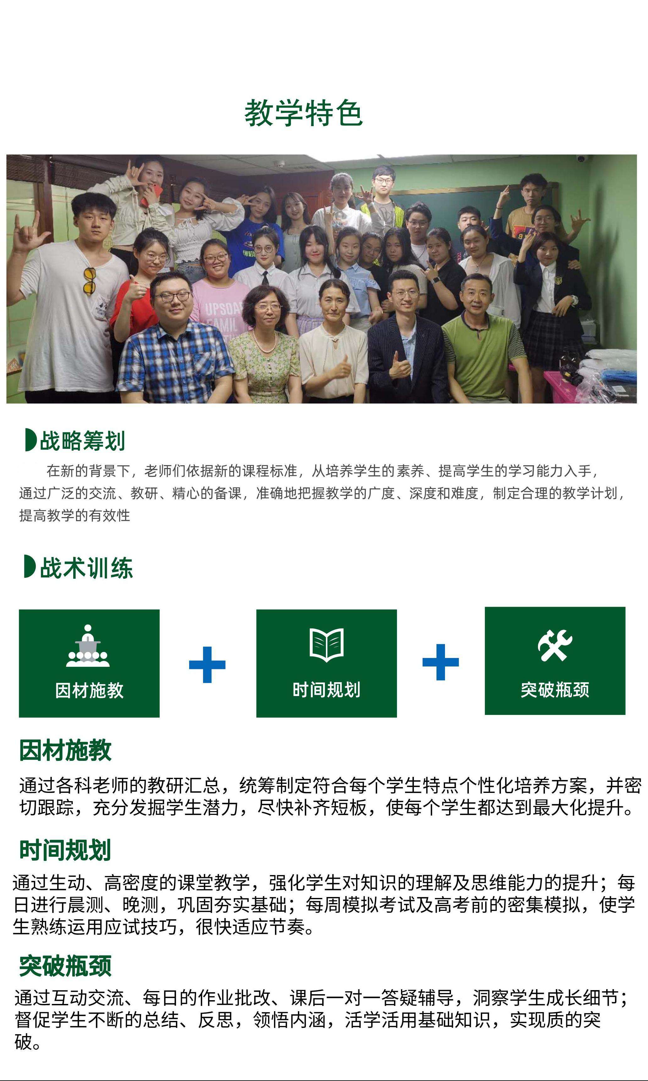 机构成立于2018年,老师们依据新的课程标准,从培养学生的科目素养、提高学生的学习能力入手,通过广泛的交流、教研、精心的备课,准确地把握教学的广度、深度和难度,制定合理的教学计划,提高教学的有效性
