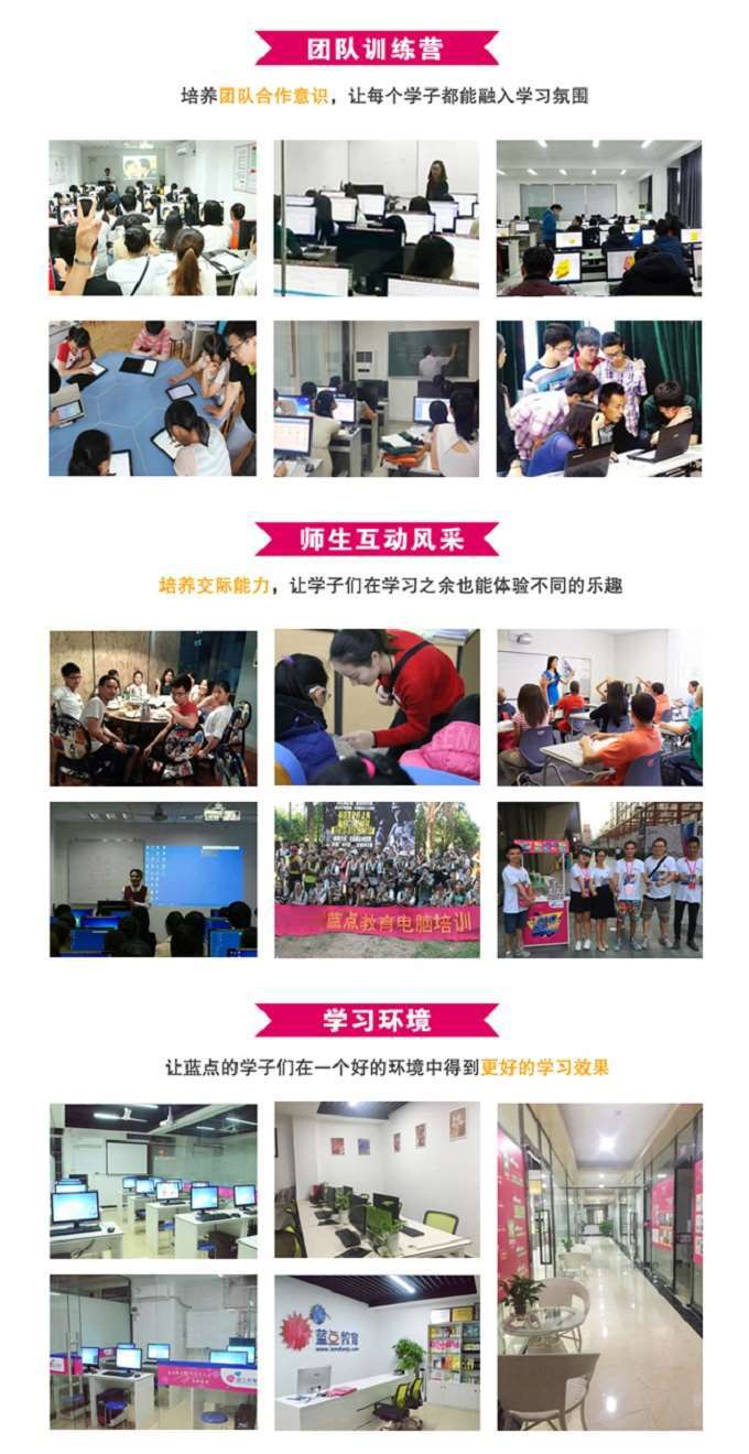 蓝点教育系专为社会输送人才的新航母,教学团队汇聚众多来自大公司的设计精英与IT精英蓝点教育与众多知名企业达成人才输送战略合作,如泰牛,市艺彩印务有限公司、中国电信、美团、美的、中海地产、保洁、厚工坊、云南普洱茶集团、等等。蓝点教育以市场为标准,授课专注实操手把手与职场接轨方式,快速拥有职场经验,学完即用,学完即送
