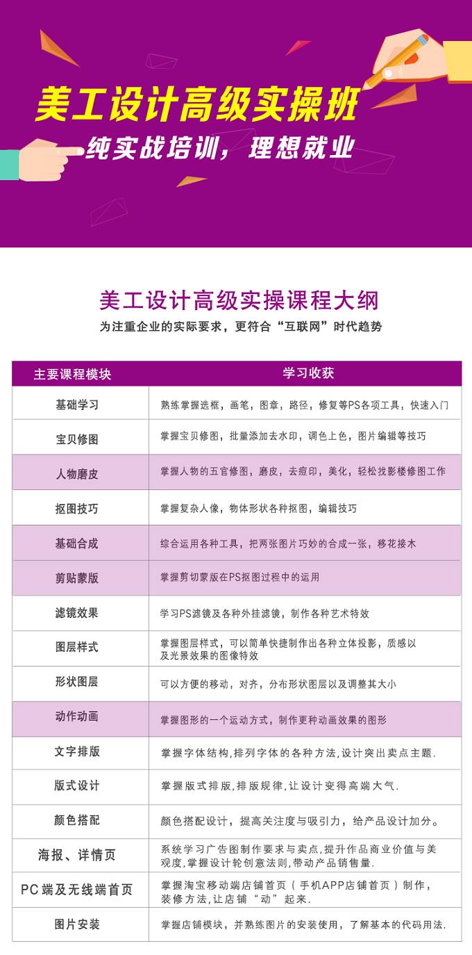 通过系统、深入、专业的学习,让学员汲取美术素养,强化理论基础,精通电脑操作,提高沟通和创造能力。能快速完成室内设计方案创作,准确完成全套施工图,能用三维设计软件表现装饰效果图。教学中强化对知识的理解、吸收和应用,强化学生运用专业知识解决实际问题的能力,培养具有现代设计思想和理念,富有想象力、创造力以及艺术素养的专业室内设计人才,满足行业对高水平复合型设计人才的需求。