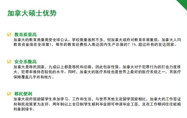加拿大是一个面积世界第 二大,人口仅有3300万的西方发达国家。加拿大经济、科技、教育非常发达先进,其 教育兼收并蓄了英国严谨的治学学风和美国教育的优势,从而发展了自身独特的教育体系。