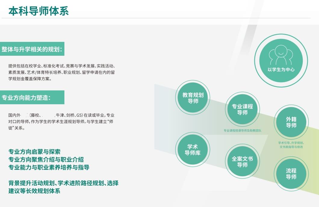 机构简介:行知青藤留学专注于高端留学规划申请,由哈佛大学、哥伦比亚大学、宾夕法尼亚大学、剑析大学等大学顶 尖世界名 校归国学子组成初始团队,以“没有围墙的国际教育”为初衷,突破国际学校的物理边界创立行知青藤留学。行知青藤通过提供留学规划、考试指导、背景提升、文书指导、学校申请、职业规划、签证辅导等“一站式服务”,为学生冲刺美国常春藤名 校与TO P3 0院校、英国G5、加拿大、新加坡、中国香港顶 尖院校等世界名 校提供坚实的保障。不同于传统机构着力于留学申请,我们集合国内外顶 尖国际教育学术导师,坚持回归教育的本质和初表,对学生实行“导师制”深度培养。通过解析世界名 校录取算法,协助学生提前制定海外升学院校目标和探索学术兴趣,以终为始个性定制标化考试与先修课选课方案,同时为学生提供国内外高端科研课题与世界知名企业实习,顶 级学 科竞赛辅导培训顶 级暑研申请等高端背景提升保障性资源;其次,通过分析目标行业、打造个人简历、岗位中请、模拟面试等,提升学生的就业竞争力。