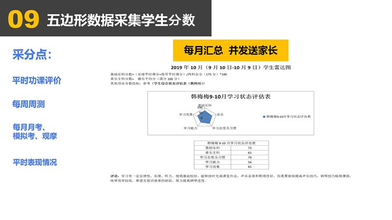 学生生活状态、学习状态、心理状态每月将按照星知海独有的五边形数据采集系统整合后,每月定期发给家长。