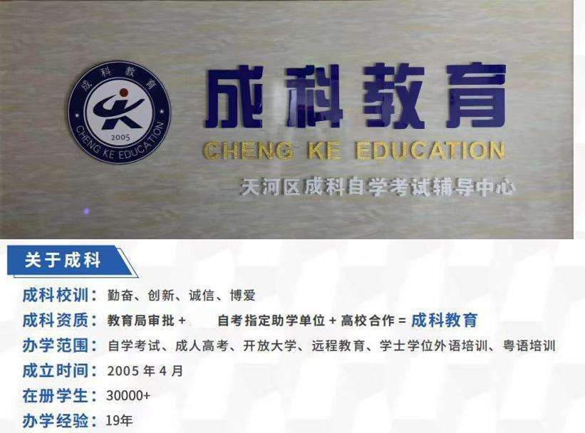 成科教育成立于2005年4月,拥有近17年的办学经验。在成科的文化范围中,充分感受到人文理念的独特性而局之一格,形成了勤奋、创新、诚信、博爱之校训精神。弘扬优良学风和作风,并服务好每一位学子。迄今服务学员累计达三十余万生(包括咨询服务和学历教育),在册学生达30000+。与各高校合作办学,独立专注服务于在职人员进一步提高自身文化水平和职业技能素养的教学中心。隶属于广州教育局、是自考办以及各高校备案审批的教学中心,采用具有针对性及灵活性的教学模式,开展了“互联网+”在线教学课堂。力保在读学员顺利通过考试,获取国家承认的大专/本科毕业证书。