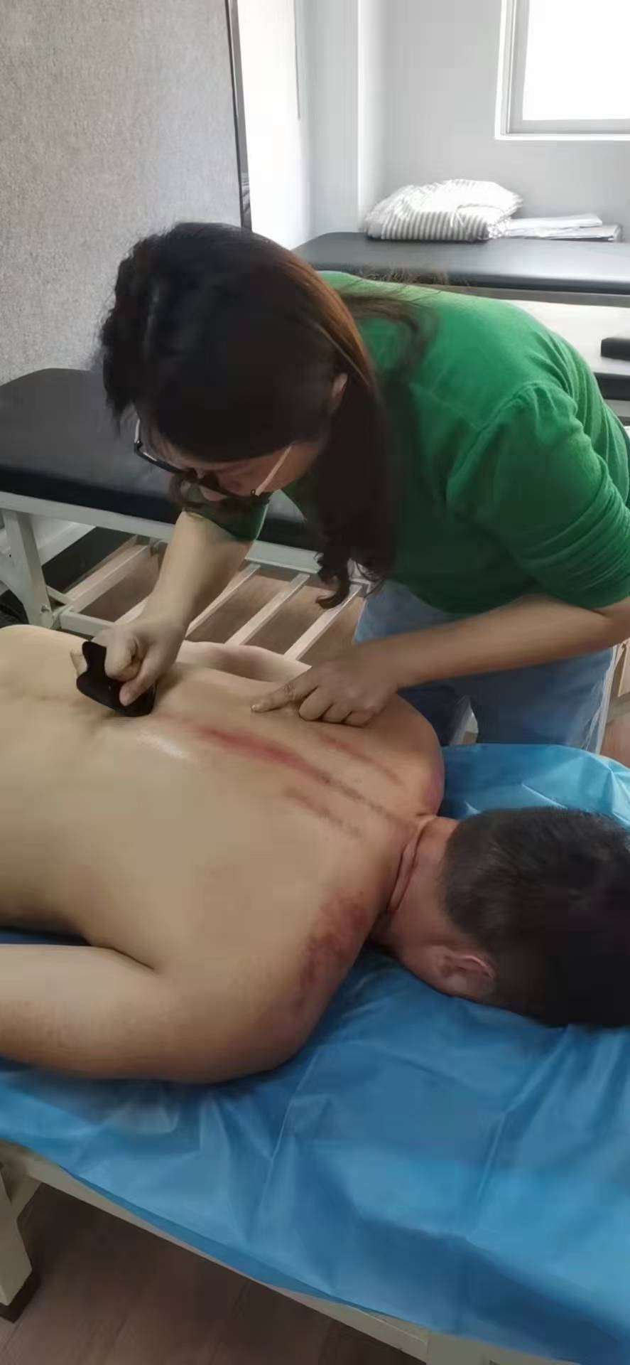 1.基础手法:直板刮、弧线刮、点刮的发力技巧,刮痧板选择与介质使用(精油、刮痧油);