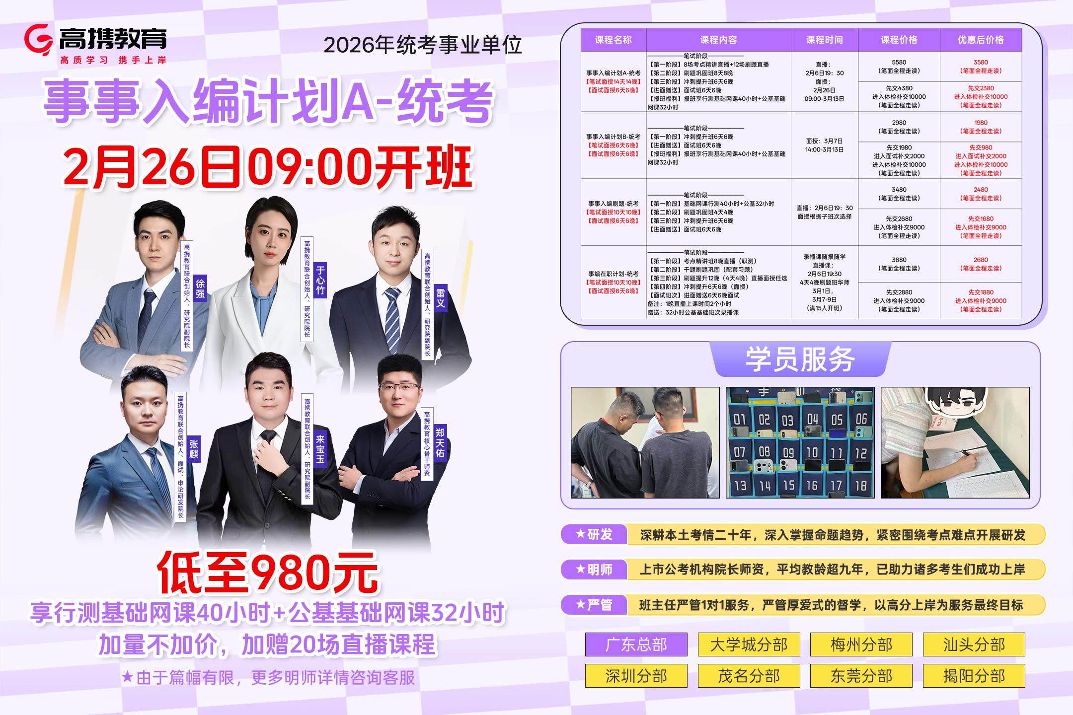 高携教育主营业务 : 公考(含国考、省考、选调、公选、遴选),事业单位(含村官转编、三支一扶))、医疗招聘、军转干、军队文职、国企。