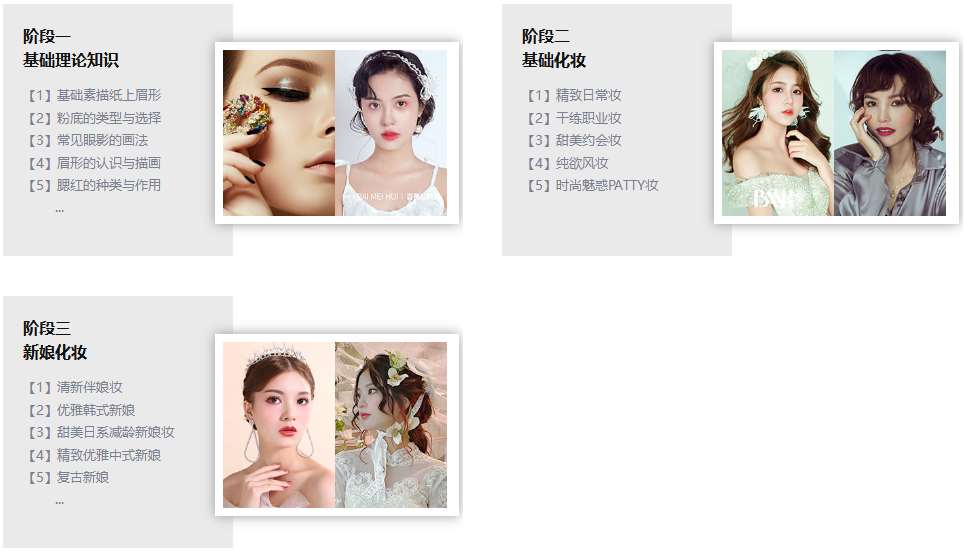 培养日常化妆、婚礼跟妆以及各种社交场合有较扎实的基础和时尚的造型能力,熟练掌握发型造型技巧,可担任婚礼跟妆师、影楼的新娘化妆师。