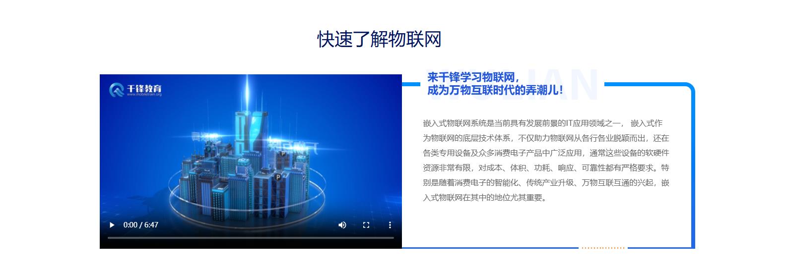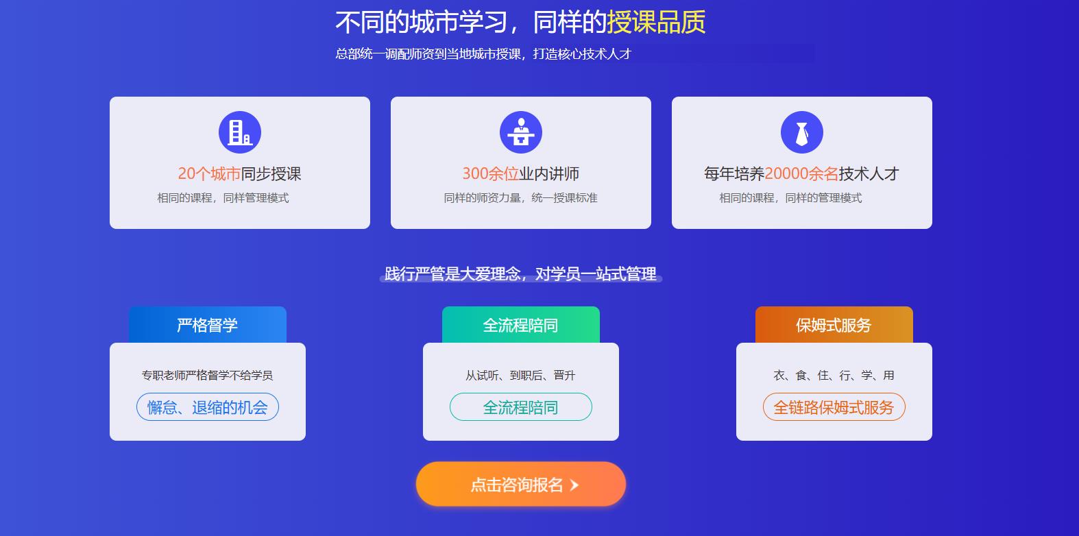 机构简介:杭州是中国东部沿海城市,经济发展迅速,对各类人才的需求也日益增加。千锋教育成立于2011年1月,立足于职业教育培训领域,公司现有教育培训、高校服务、企业服务三大业务板块。教育培训业务分为大学生技能培训和职后技能培训;高校服务业务主要提供校企合作全解决方案与定制服务;企业服务业务主要为企业提供专业化综合服务。公司总部位于北京,目前已在20个城市成立分公司,现有教研讲师团队300余人。公司目前已与国内20000余家IT相关企业建立人才输送合作关系,每年培养泛IT人才近2万人,累计培养超10余万泛IT人才,累计向互联网输出免费教学视频976余套,累积播放量超10812万余次。每年有数百万名学员接受组织的技术研讨会、技术培训课、网络公开课及视频等服务。公司成立教研机构,推出贴近企业需求的线下技能培训课程。课程包含HTML5大前端培训、Java+分布式开发培训、Python人工智能+数据分析培训、全领域实战UI/UE设计培训、云计算培训、全栈软件测试培训、大数据+数据智能培训、智能物联网+嵌入式培训、Unity游戏开发培训、网络安全培训、区块链培训、影视剪辑包装培训、游戏原画培训、全媒体运营培训、商业插画培训、产品经理培训。采用全程面授高品质、高体验培养模式,科目大纲紧跟企业需求,拥有国内一体化教学管理及学员服务,在职业教育发展道路上不断探索前行。
