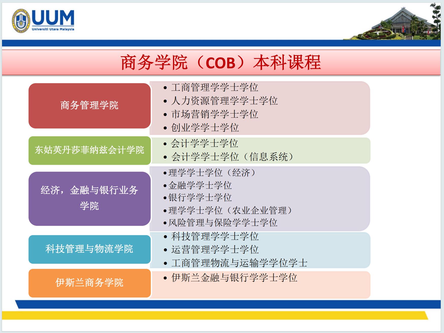 马来西亚北方大学被世界公认为一所充满生机和活力的公立高等教育学府, 是为将马来西亚建设成为管理及其他相关领域的教学和研究中心为目的而成立的大学。 北方大学已在信息传播、管理技术和质量管理等领域取得了重要的成果, 为马来西亚的经济建设做出了重要的贡献。