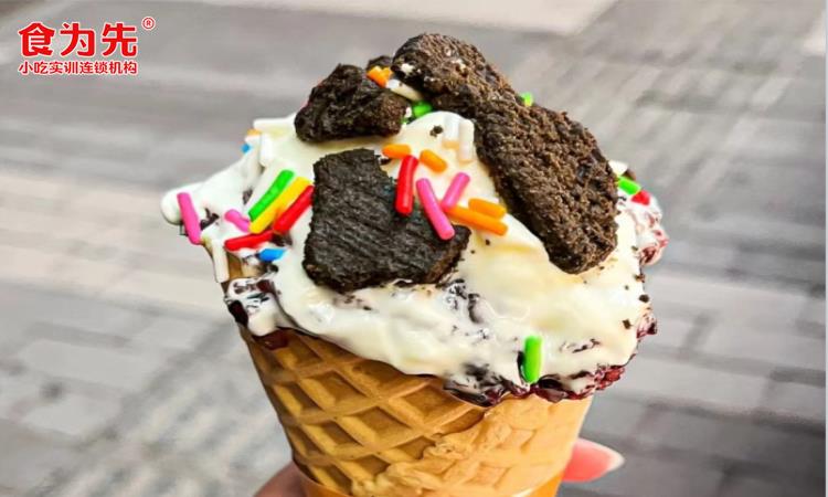 热奶宝是河南街头小吃,传统做法是往冰淇淋脆筒里装入糯米饭,表面浇一层甜奶油。后者迅速向下渗透,似乎把糯米浸泡得更加绵软了。热奶宝外形像冰淇淋,但冒着热气,因此有“热冰淇淋”之称,软软糯糯、冬季专属。一夜间,热奶宝在山东、河南、浙江、四川、广东等地晋升为网红小吃。