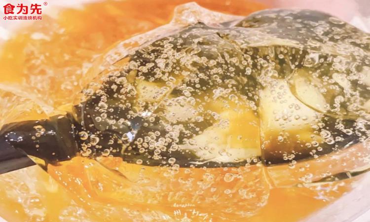手搓冰粉,顾名思义,用手搓出来的冰粉,成都原产地运来的冰粉籽,在净水中被不断揉搓,胶汁逐渐凝结成晶莹剔透的冰粉。而在揉搓过程中大量空气渗入,透明的冰粉中就出现了许多细密的小气泡,这是市面上工业冰粉所没有的特征。传承古法、坚持手工制作的冰粉,比普通冰粉更为Q弹爽滑,勺子拍在上面,像果冻一样“duang”地晃动,质地细腻有韧性 吃起来超过瘾。