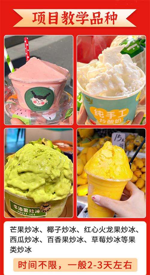2、品种多样化、果汁操作方法、奶油炒冰,坚果炒冰等
