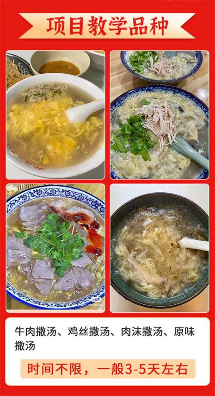 撒汤是流传于民间的一种小吃,起源于古颍州,即今阜阳市。撒汤以其简单的做法和鲜美的口味被流传开来。主要是用羊或者鸡的骨头来熬制的汤,汤里稍微勾点芡汁,让汤浓一点。打一个鸡蛋在碗里搅匀,用滚开的汤汁一冲,冲成蛋花,鲜美的撒汤就做成。