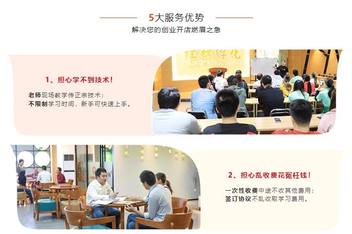 机构简介: 煌旗餐饮培训隶属东莞市强劲煌旗餐饮管理服务有限公司(简称:煌旗餐饮培训集团、煌旗集团、煌旗小吃培训),一家集餐饮研发、餐饮培训、餐饮咨询及策划服务、餐饮连锁、经营投资为一体的综合性餐饮管理公司。公司由初期1家培训机构发展到数十家培训机构。 公司培训机构分布东莞、深圳、广州、惠州、中山、佛山、江门、杭州、温州,义乌,泉州、贵阳、昆明等城市,培训课程品类丰富,课程包含:早餐,小吃,粉面,中餐,夜宵,卤味,西点,饮品等8大系列,上百种热门小吃餐饮技术。 煌旗始终坚持:“传承中国味道,帮助千万人创业”为企业使命,“让天下没有难做的餐饮”为企业愿景,竭诚所能为餐饮创业者提供更多更好的特色餐饮技术培训与服务! 到目前为止、已累计为社会培养众多餐饮创业人士,得到了广大学员高度的认可与肯定。学校优势1、技术好口味正煌旗拥有行业少有的专业研发团队、技术配方经过不断升级迭代改良,确保技术正宗、口味纯正!2、强大教学实力煌旗近百人教学团队、严格老师培训选拨机制,确保高质量教学!3、完善培训体系所有入学均签订合同,学习中老师不负责、技术有保留,服务差,可直接向总经理投诉!4、花钱少优惠多煌旗不仅收费合理,并准备众多技术套餐,让学员以更少钱学到更多技术,享受更多优惠!5、规模大环境好煌旗旗下数十家标准化培训机构,均配备各种标准教研室供学员学习!6、创业服务支持煌旗学员毕业后、可享受技术免费升级、以及开店选址、运营、设备物料供给等咨询服务!