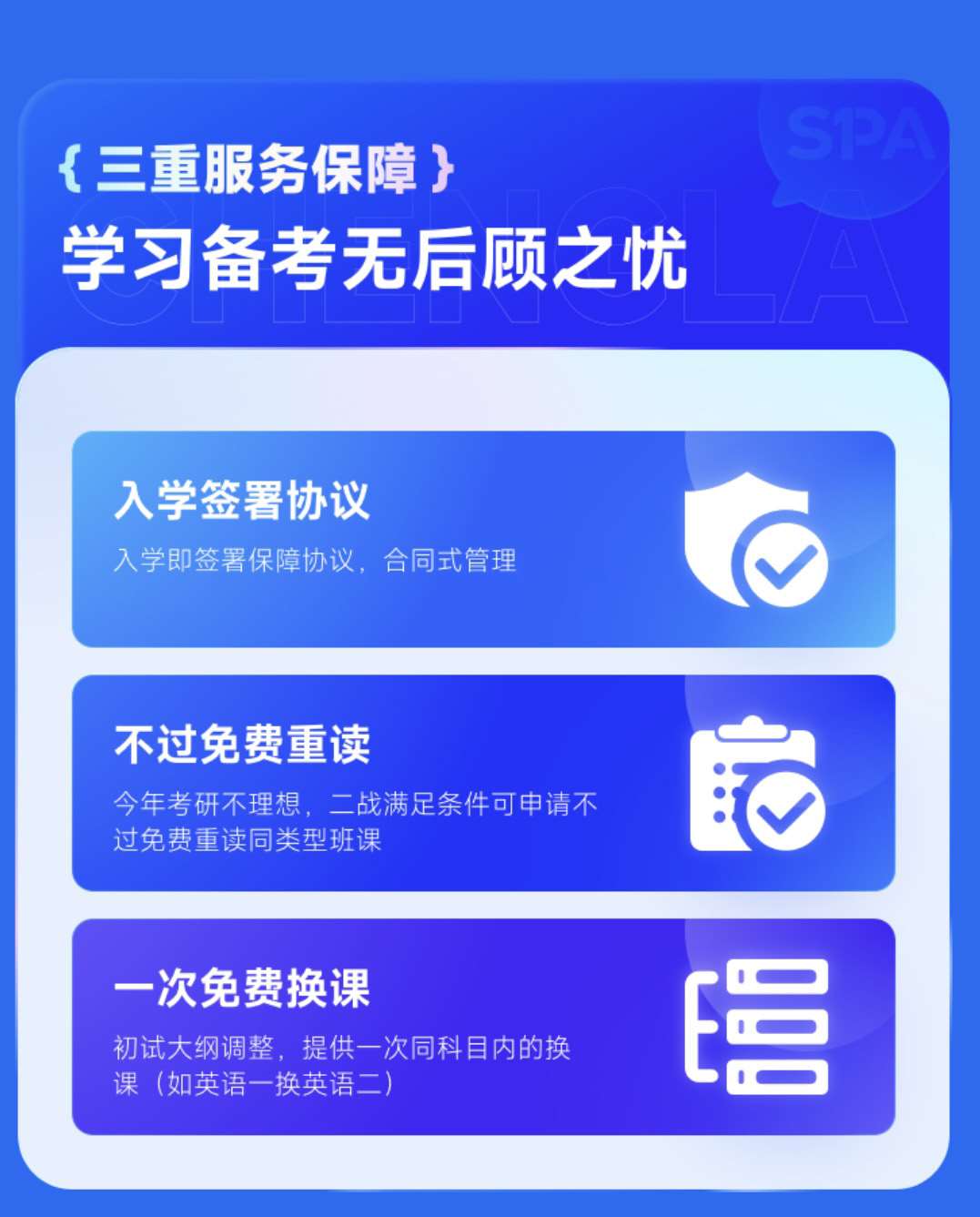 保障:一科不过多课重读+一次免费换课机会+协议保障,学习后顾无忧