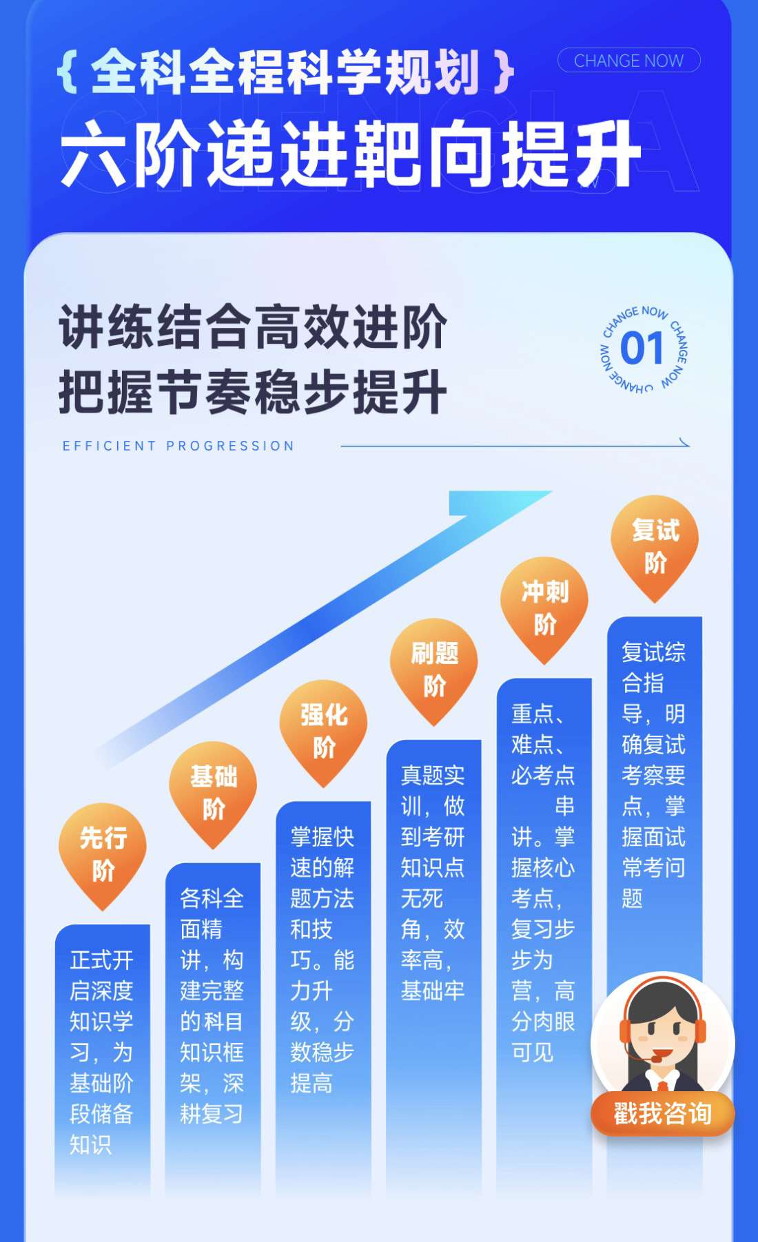 六阶:从初试到复试,从基础知识到应试技巧,六大阶段主力稳步提升!