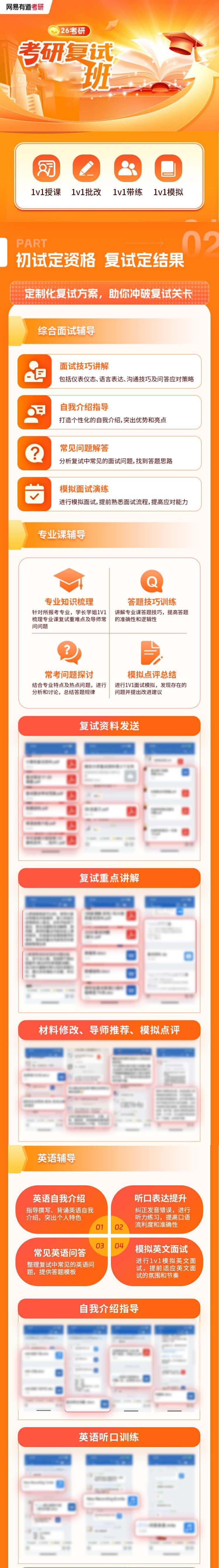 核心特色:依托有道考研团队丰富的复试辅导经验,打造全流程体系,涵盖复试礼仪、专业问答、综合面试、调剂指导等核心模块,摒弃冗余内容,针对性解决复试备考痛点;