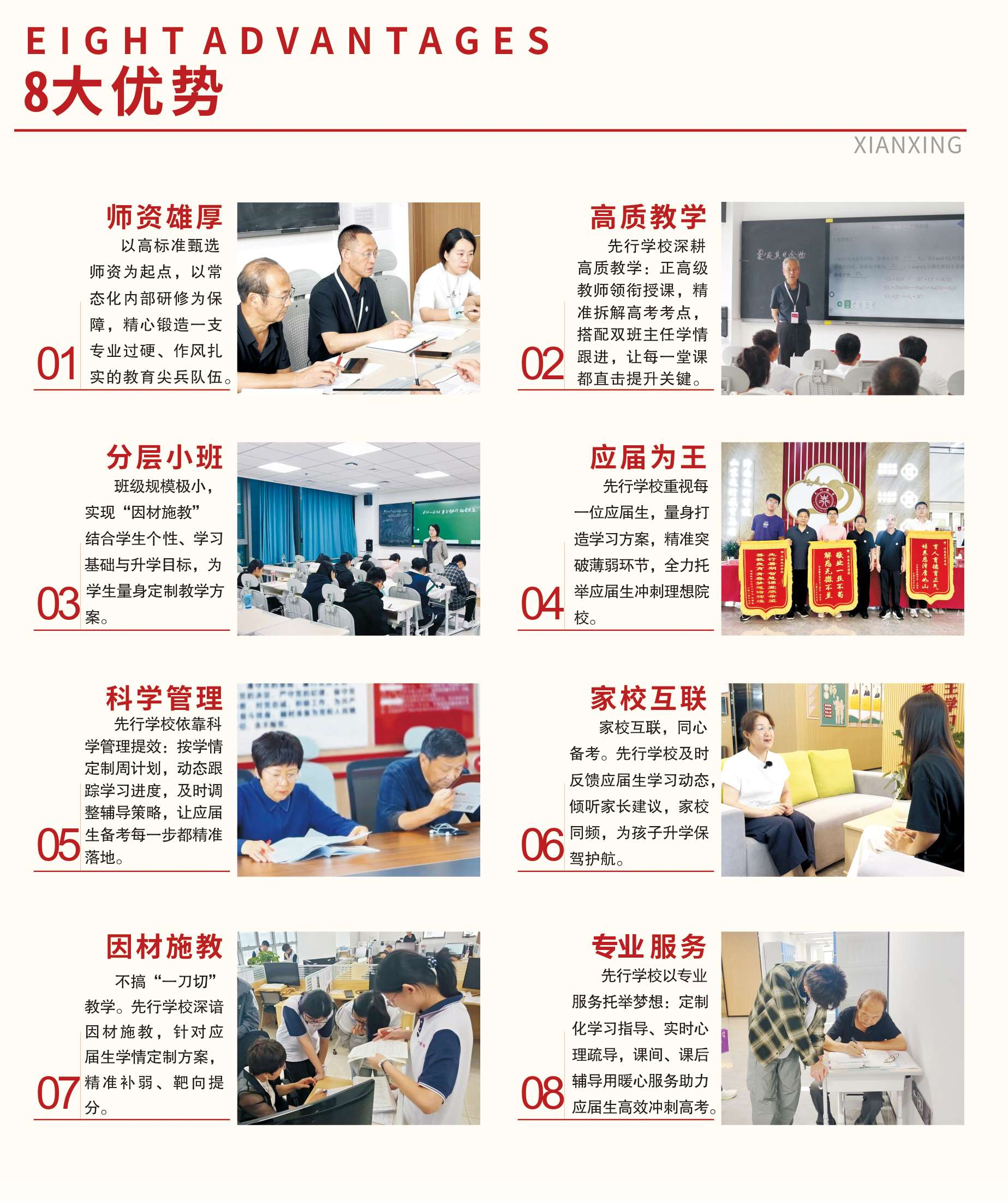 济南先行学校成立于2018年,经济南市教育局批准设立,是一所高考规划学校。实行全封闭军事化管理,专注为 高三复读生、应届尖子生、艺术生文化课冲刺提供高精准度高考冲刺教学。