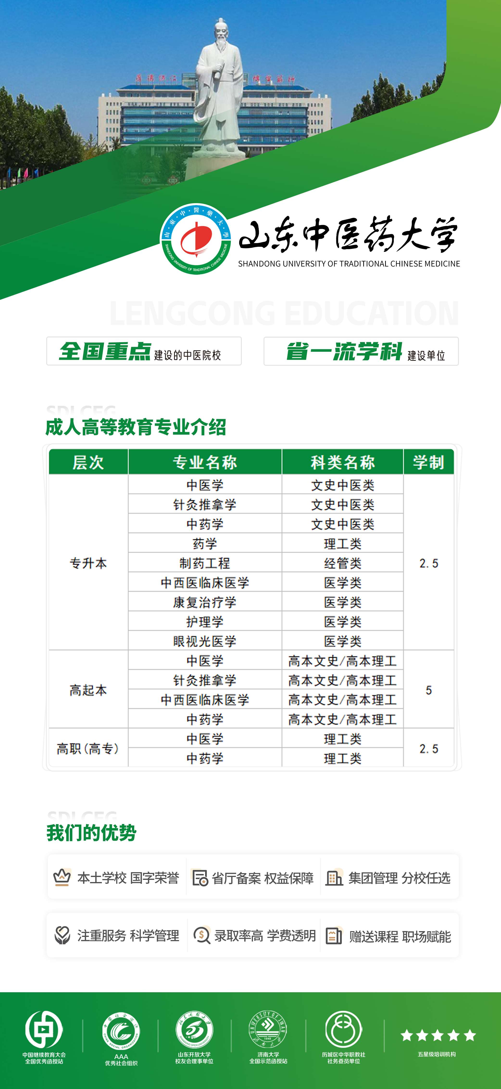 机构简介:山东领创教育集团成立于2007年,总部位于山东省会济南,韩国首尔设有海外分部。集团在职职工170余人,集团致力于继续教育事业,拥有成人学历教育、出国留学、职业培训三大业务板块。旗下拥有济南市历城区领创教育培训学校、济南市恒展职业培训学校等八个成人学历教育及职业教育办学主体单位,在东营、淄博、青岛、德州设有分校(部)。旗下山东领创蔚来国际教育咨询有限公司归口管理出国留学业务;济南育路教育科技有限公司(山东育路网sd.*****.com)归口管理国际学校等择校业务;山东微言教育科技有限公司归口管理职业培训业务。目前,成人学历在籍学生9200余人,职业教育培训7900余人次,出国留学累计输送1065人次。集团立足山东,以二十大报告中提出的“办好人民满意的教育,统筹职业教育、高等教育、继续教育协同创新”为办学方向,不忘初心,砥砺奋进,致力打造成为山东本土办学质量和办学声誉俱佳的教育品牌。2022年11月21日,经济南市历城区区委教育工委研究决定,中国共 产党济南市历城区领创教育培训学校支部委员会正式成立。 多年来,学校办学成果成效显著,2021-2023连续三年蝉联中国远程与继续教育大会全国优秀函授站(校外教学点)荣誉,被民政局评为3 A级“优秀社会组织”,被教育局评估为“优秀民办学校”,连续三年被济南大学评为成人高等教育“示范单位”,被山东理工大学、齐鲁工业大学、山东交通学院、山东开放大学等院校评为“优秀合作单位”“办学先进单位”,荣获山大路街道党委会“社区共建优秀企业”荣誉,荣获“扶贫助农”及慈善机构爱心捐赠行动企业荣誉。 集团自成立以来,随着学校文化建设的不断夯实,以“为之则安,笃行至善”为集团校训,以“服务社会、推送人才”为办学宗旨,贯彻“敬、悟、慎、新”的四字箴言,秉承“正心、正念、正道、正行”的价值观,践行“团结、紧张、严肃、活泼”的严谨校风和“主动、落地、守信、利他”的工作作风,与国内外40余所高等学府、科研机构、行业协会建立了合作关系,组织了50多名既有理论深度又有实战经验的专家团队,以精细的服务理念为学员赋能,得到了广大学员和社会的一致认可。