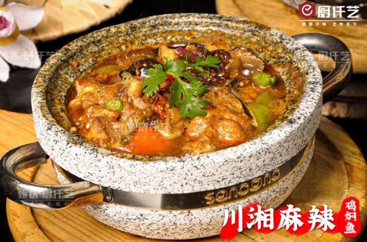香妃鸡恋上鱼培训:香妃鸡恋上鱼又称鸡焖鱼,相传唐朝初年,大量人马安营扎寨在东营村,后来军士们成家立业,有了东营村、西营村。西营养鸡,东营打鱼,于是人们将鸡和鱼炖在一起,顿感鲜美无比。厨仟艺小吃再次创新,以小石锅按秘方烹制鸡肉、鱼块,鸡软嫩,鱼鲜美,酱香浓郁,回味无穷。