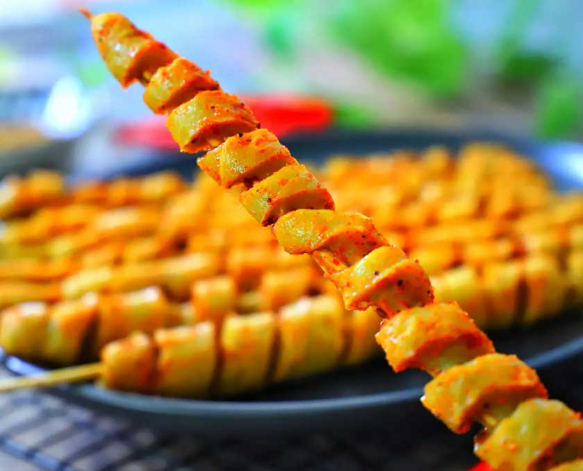 烤面筋培训:烤面筋是陕西关中地区传统特色小吃,后流传至各地,制作时将螺旋状面筋穿到竹签上,置于炭火上烘烤,撒香辣、孜然料,成菜口感筋道,干香入味,而且售价低廉,深受面筋爱好者的青睐。烤面筋是大街小巷热卖的小吃,顾客接受度极高。街头烤面筋的小摊,别看小,但赚钱很可观。