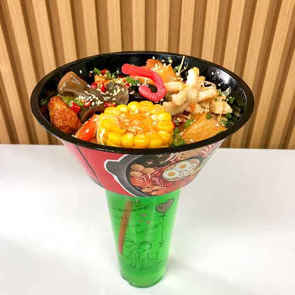 行走的火锅杯培训:行走的火锅杯是一项网红特色小吃项目,其将奶茶、果汁等饮品与火锅结合。火锅杯造型独特:上层圆碗内盛入烫好的火锅食材,底层的饮品杯内盛装顾客选择的饮品,携带方便,既可以在店内坐着就餐,也能边走边吃,所以被称为行走的火锅杯。
