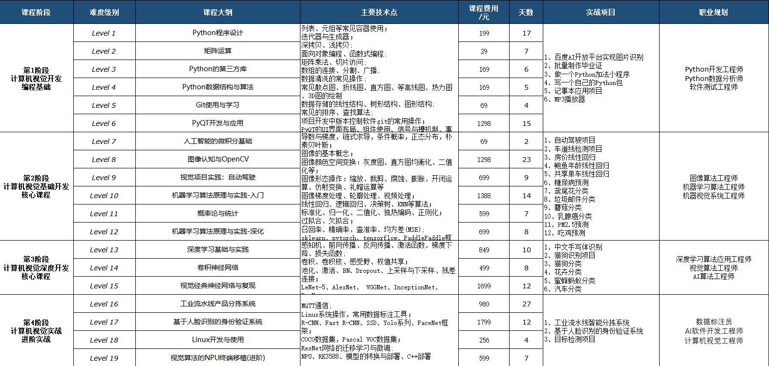 2、无人工智能相关背景的职场人士,无论有无就业服务需求,无论有无Python语言基础,喜欢计算机视觉开发行业,对计算机视觉开发感兴趣的零基础学员。
