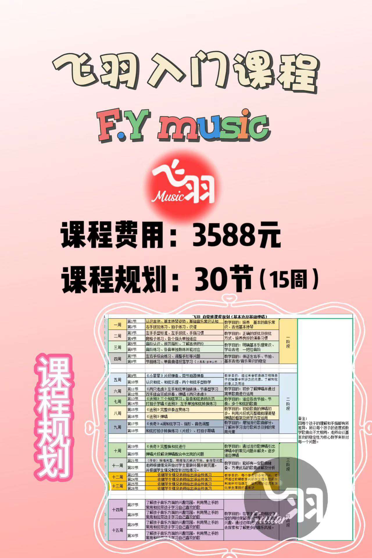 飞羽吉他成立于2020年,地处市中心,方便接送。师资力量雄厚,均为教龄九年以上的专业老师,老师们负责用心,会为每一位学生定制专属课程方案。