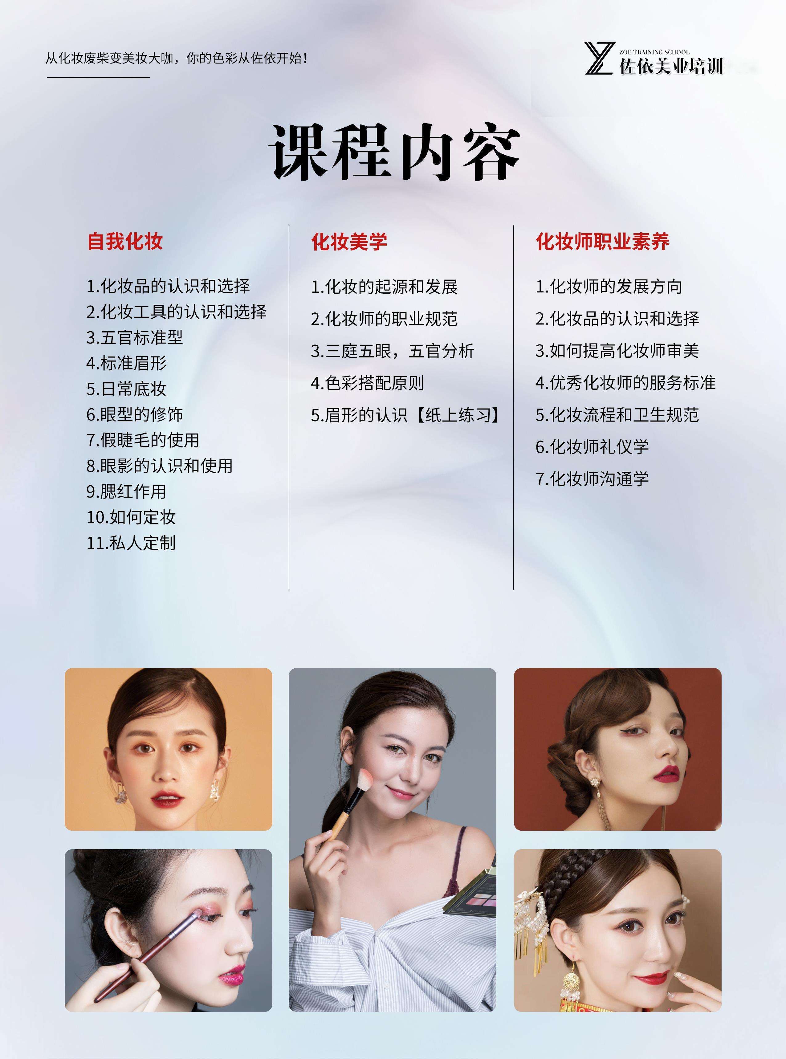 机构简介:佐依美业培训,省内直营连锁校区,总校创办于2012年,是一家专注于美容美体、化妆造型、美甲美睫、半永久纹绣、皮肤管理、摄影的技能培训。师资拥有10多名专业任课教师,教龄均在5年以上,完善的教学体系,理论+实操相结合,培养了一批又一批的美容师、美甲师、化妆师、纹绣师,学生遍布全国各地,也为行业输送了大量美业人才。承诺:1、小班化教学:一对一辅导,保证教学质量;2、包教学会:完成课时课程,如未考核通过或者自己觉得没学好,可以免费复学,直到学会为止;3、推荐就业:学员通过考核,将推荐安排就业,提供多个商家供学生选择,直到双方满意为止;4、免费进修:凡是毕业学生,凭毕业证后期10年内免费进修;5、消费透明:一次性收费,中途绝无二次隐形消费6、协助开店:毕业学生如需创业,学免费提供创业咨询,老师下店辅导