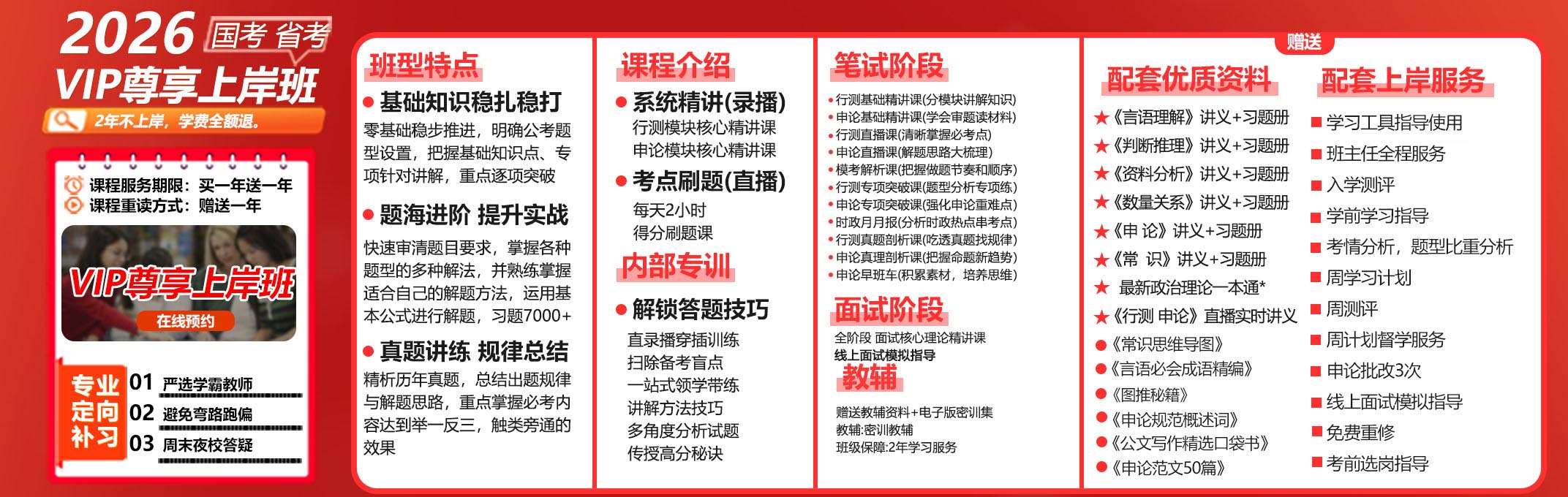 入学测试,三个阶段的个性化学习计划,小班化教学,1v1服务,督学提醒上课,公告讲解,报考指导、选岗指导、笔试,面试,政审指导,体检指导。