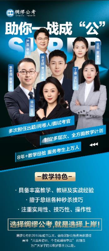 绸缪公考自2015年成立以来,始终深耕公务员培训领域,秉持“只选用知名老师,个性化辅导学员”的理念,为广大学子的公职梦想全力以赴。