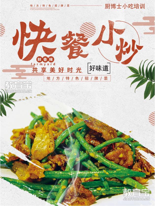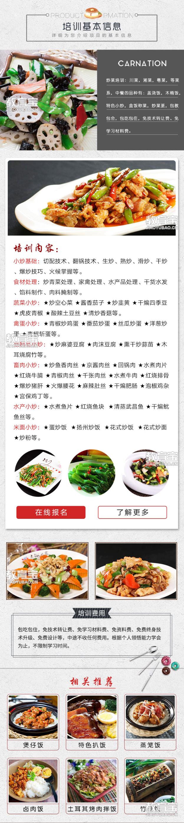 炒菜培训:川菜,湘菜,粤菜,等菜系,中餐的品种有:盖浇饭,木桶饭,特色小炒,盒饭称菜,炒菜班,包吃包住,免技术转让费、免学习材料费。