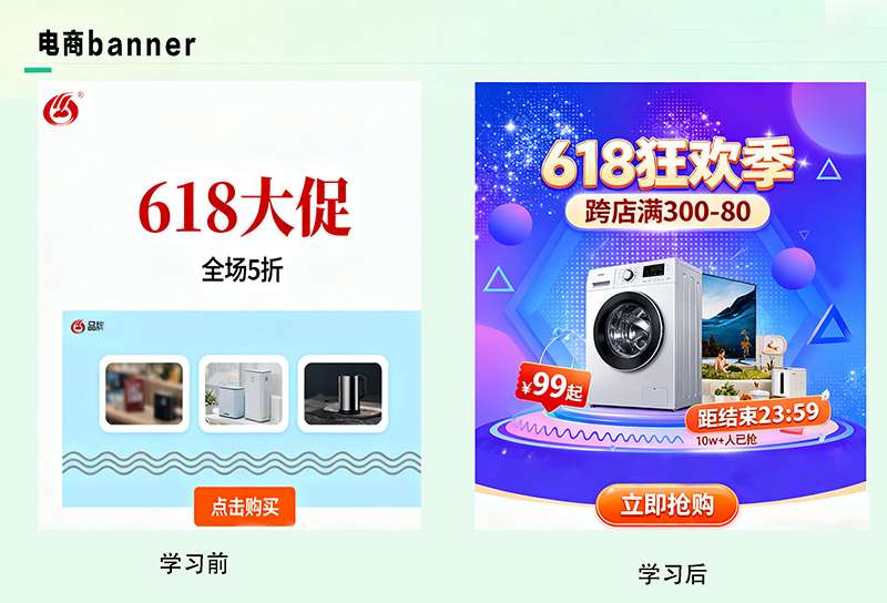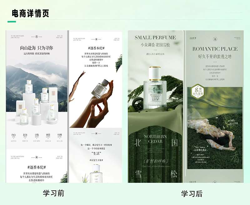 电商视觉与运营设计:涉及商业摄影、电商平台设计、运营设计、店铺装修、三维制作等,学习从产品定位到后期运营的整套电商平台解决方案。
