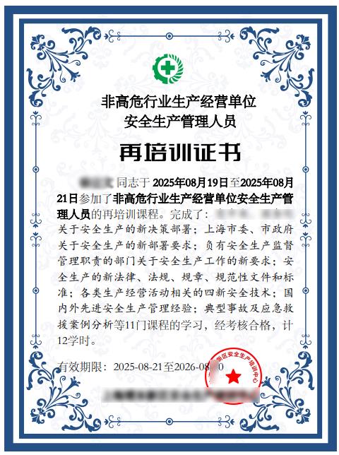 行业类别:非高危行业生产经营单位安全生产管理人员